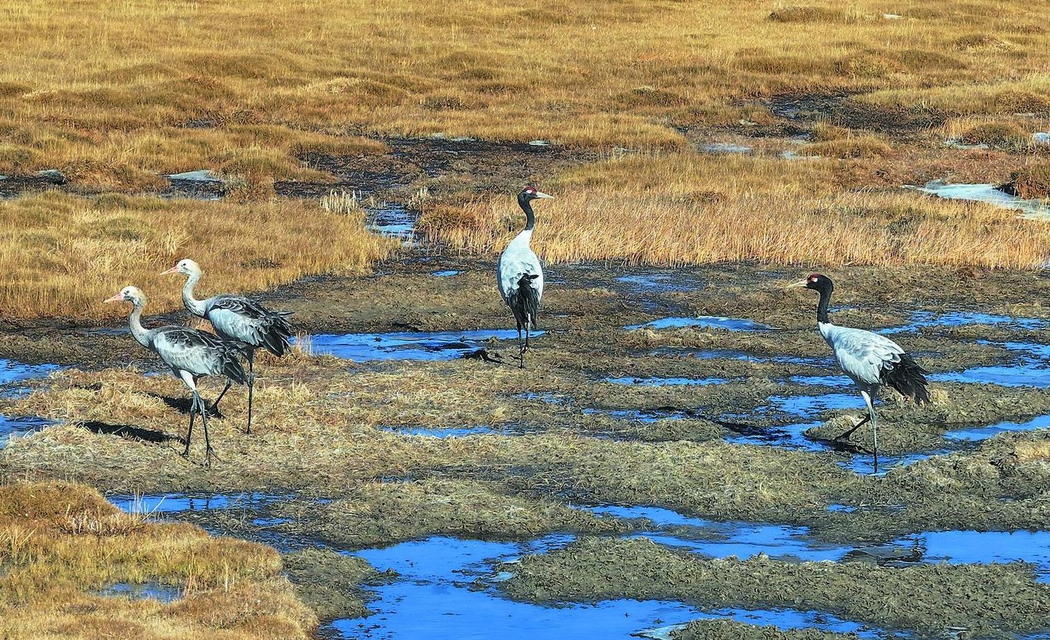 ?玉樹隆寶:首批黑頸鶴“如約而至”
