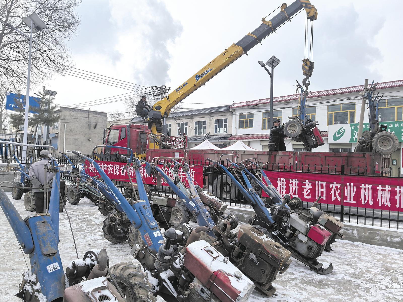 春回高原,萬(wàn)物復(fù)蘇。3月6日,在西寧市大通回族土族自治縣橋頭鎮(zhèn)毛家寨村的小廣場(chǎng)上,一臺(tái)臺(tái)“服役”多年的老舊拖拉機(jī)整齊地停放著,經(jīng)過(guò)大通縣農(nóng)機(jī)推廣站和農(nóng)機(jī)報(bào)廢企業(yè)辦理相關(guān)手續(xù)之后,被吊車吊起放到大卡車上,等待著被回收拆解。這一幕,正是青海省全面啟動(dòng)農(nóng)機(jī)統(tǒng)一報(bào)廢工作的生動(dòng)寫照。