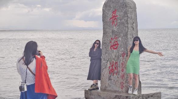 游客們沉浸于高原夏日的純凈與美好,紛紛用鏡頭記錄下這份美景?!暗谝淮蝸砬嗪:?,遼闊的湖面和蔚藍的湖水讓我們深感震撼!”來自省外的游客感慨道。景區(qū)工作人員也熱情回應(yīng):“青海湖四季都很美,歡迎你們再來!”