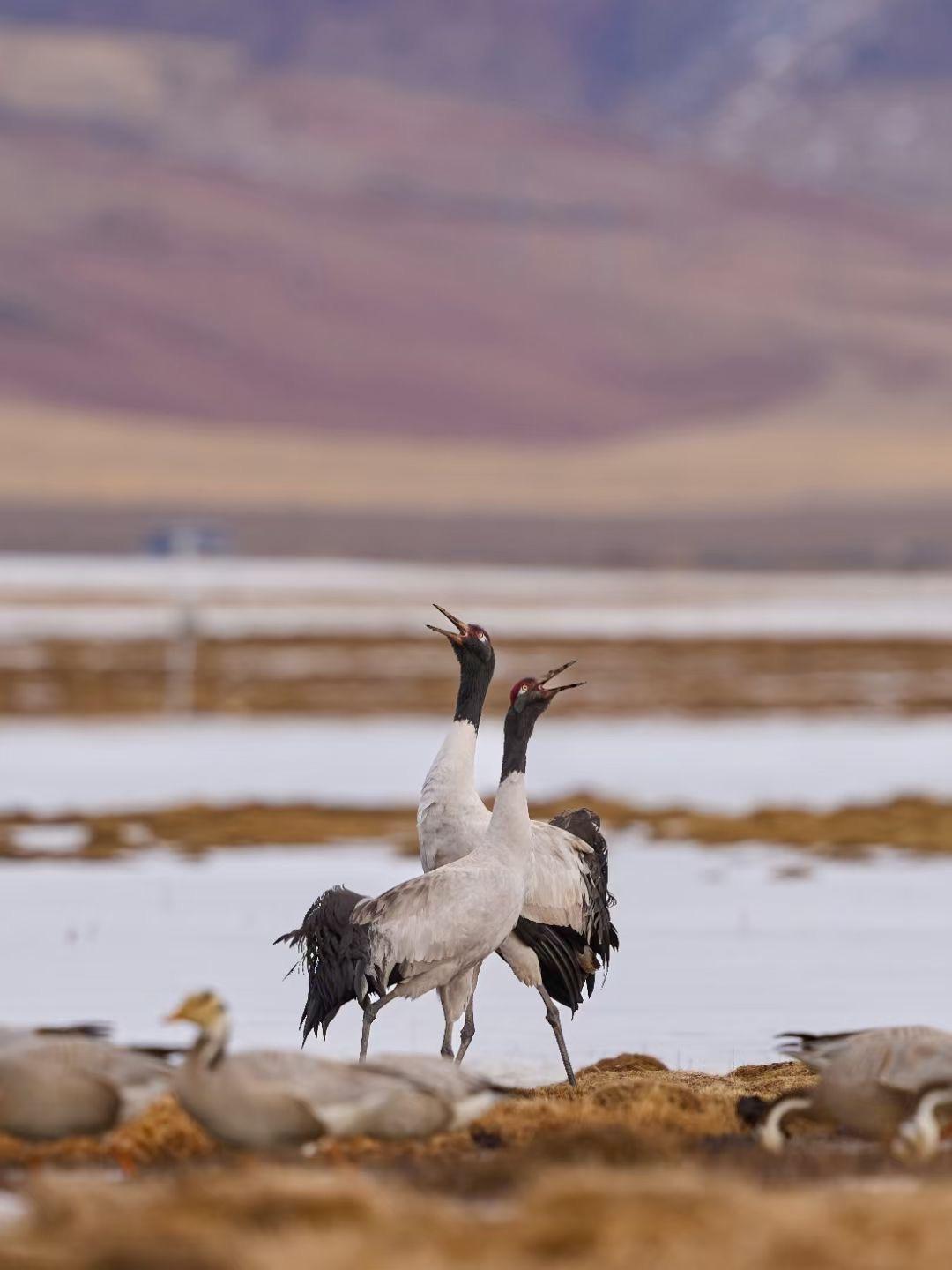 現(xiàn)場(chǎng)觀測(cè)黑頸鶴。
