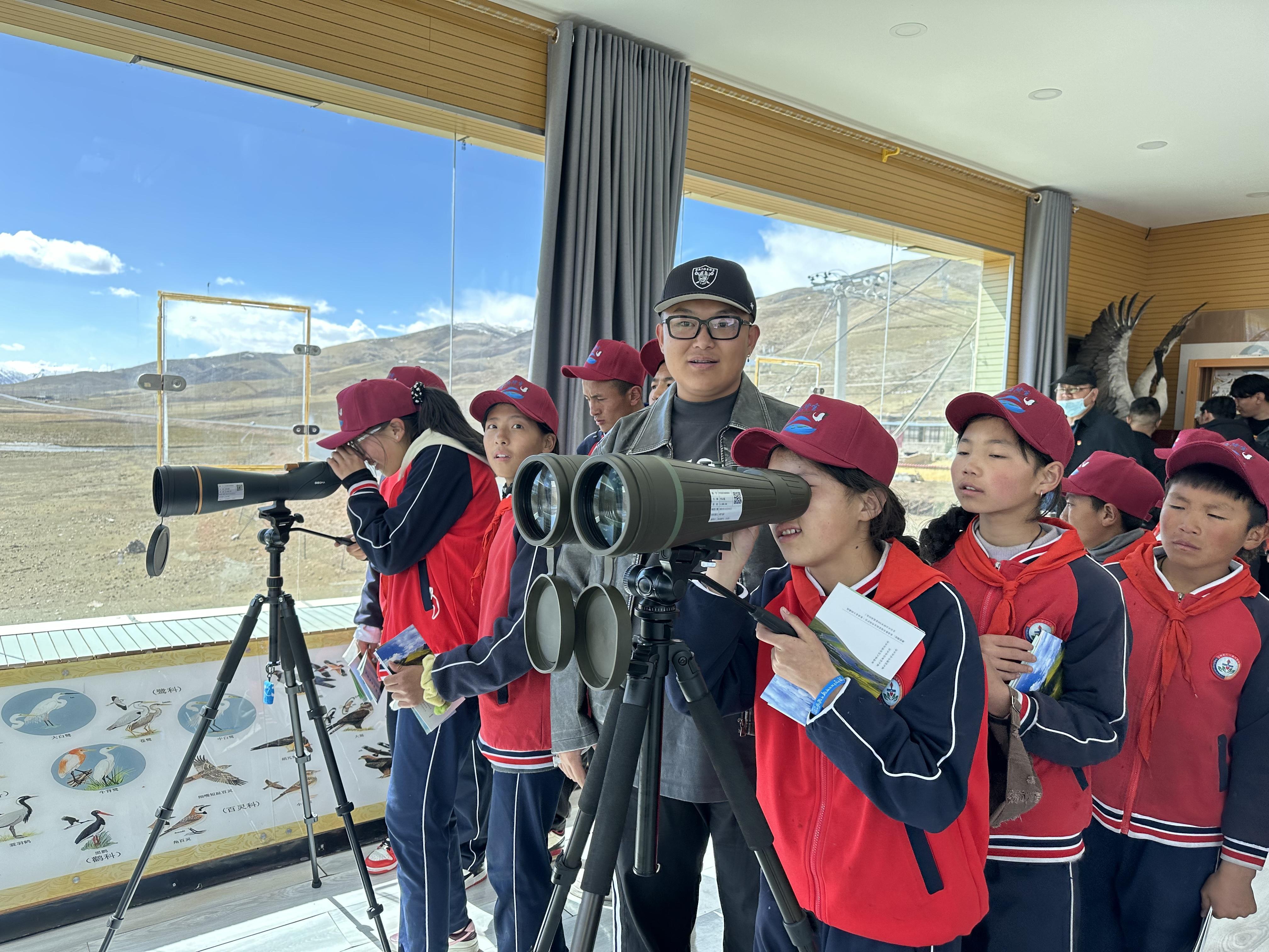 “黑頸鶴真漂亮!”“快看!那邊還有兩只斑頭雁。”5月8日,玉樹藏族自治州八一知行學(xué)校組織師生來到青海隆寶灘國際重要濕地內(nèi)的國家公園示范省自然教育基地,開展自然教育活動?;顒蝇F(xiàn)場,孩子們在戶外平臺用望遠鏡實地進行鳥類觀察,參觀隆寶國家級自然保護區(qū)宣教館,觀看實時監(jiān)測畫面,了解隆寶國家級自然保護區(qū)的生物多樣性。本報記者 程宦寧 攝