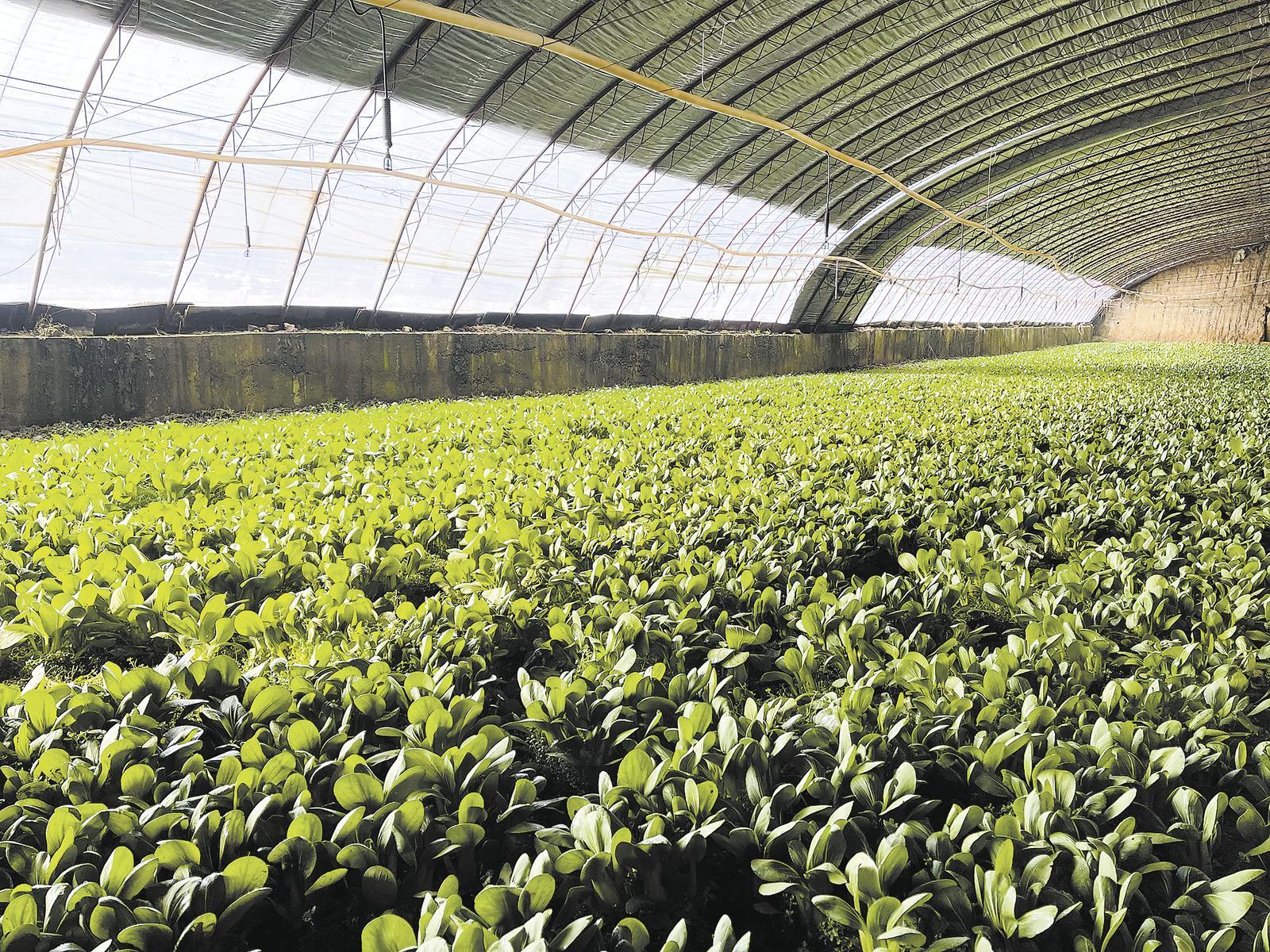 日光溫室里的小油菜。(拍攝于1月26日)本報記者 陳俊 通訊員 仲喜年 攝
