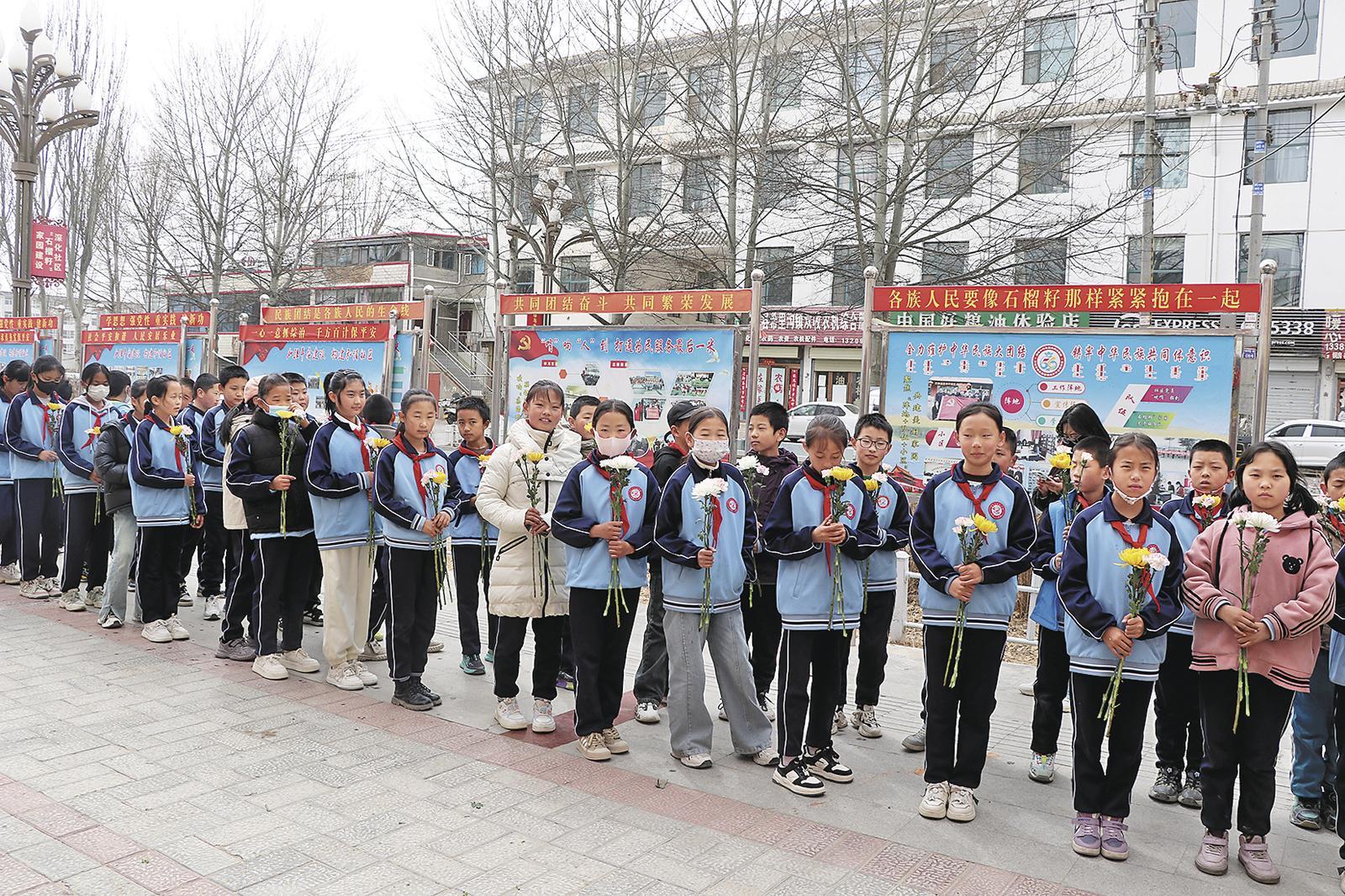 為樹(shù)立文明新風(fēng),3月31日,海西蒙古族藏族自治州烏蘭縣希里溝鎮(zhèn)城中社區(qū)組織轄區(qū)居民及縣實(shí)驗(yàn)小學(xué)師生在烈士陵園開(kāi)展“一束鮮花寄哀思 別樣清明一樣情”活動(dòng)?;顒?dòng)期間,社區(qū)工作人員為大家免費(fèi)發(fā)放祭祀鮮花,科普文明祭祀知識(shí),呼吁大家以文明、綠色、環(huán)保的祭掃方式緬懷先祖先賢與先烈。