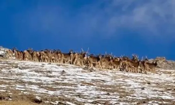 罕見!冬日黃河源頭出現(xiàn)白唇鹿混合大種群