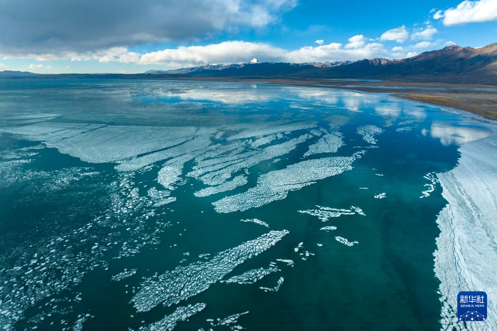 瑪旁雍錯湖面上的冰堆積在一起,形似波浪(1月29日攝)。新華社記者 關(guān)明輝 攝 ??