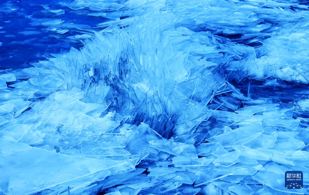 瑪旁雍錯湖面上的冰像碎玻璃一樣透亮(1月29日攝)。新華社記者 關(guān)明輝 攝 ??