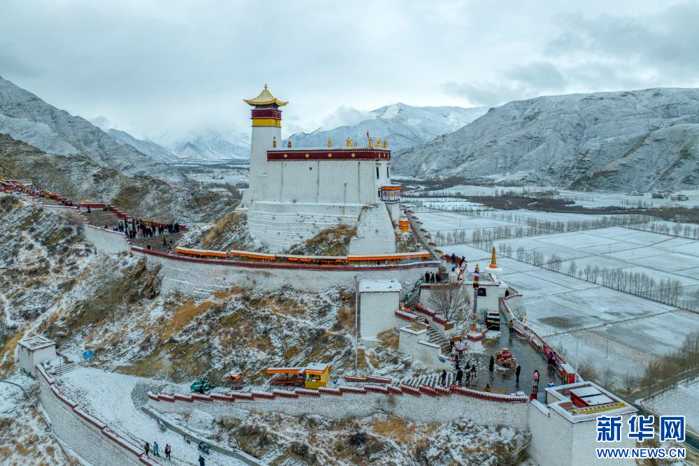15日,西藏多地迎來降雪天氣,雪后的雍布拉康更顯莊嚴(yán),不少游客前來游玩、拍照,欣賞冬日別樣景致。