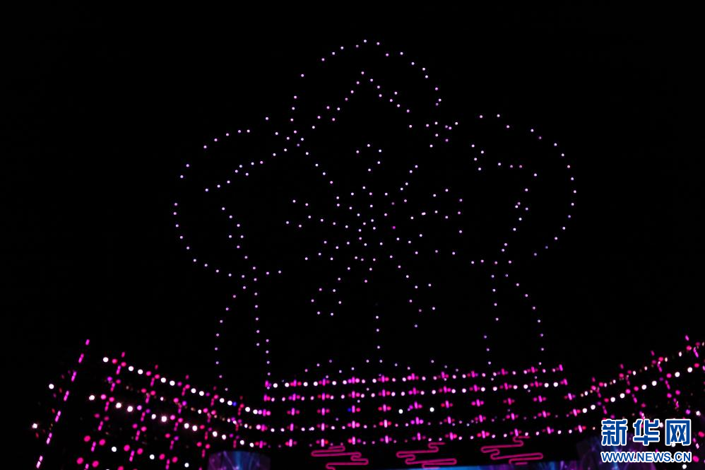 3月31日,開幕式上的無人機表演。新華網(wǎng)發(fā) 李騰 攝