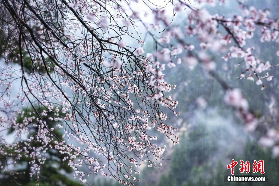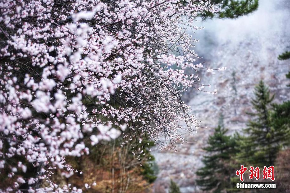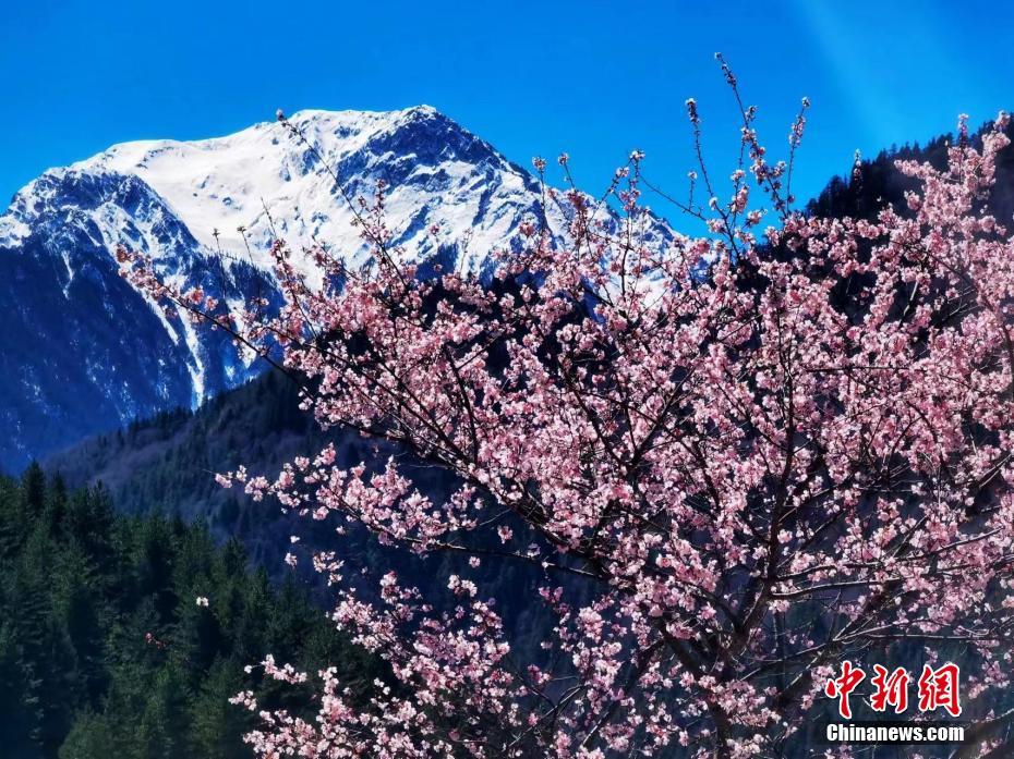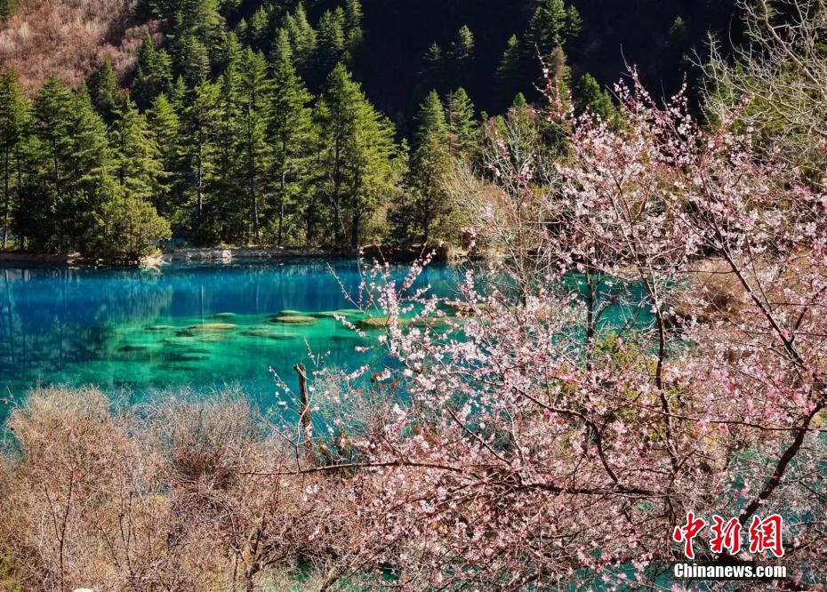 九寨溝景區(qū)盛開(kāi)的野桃花。梁楓 攝