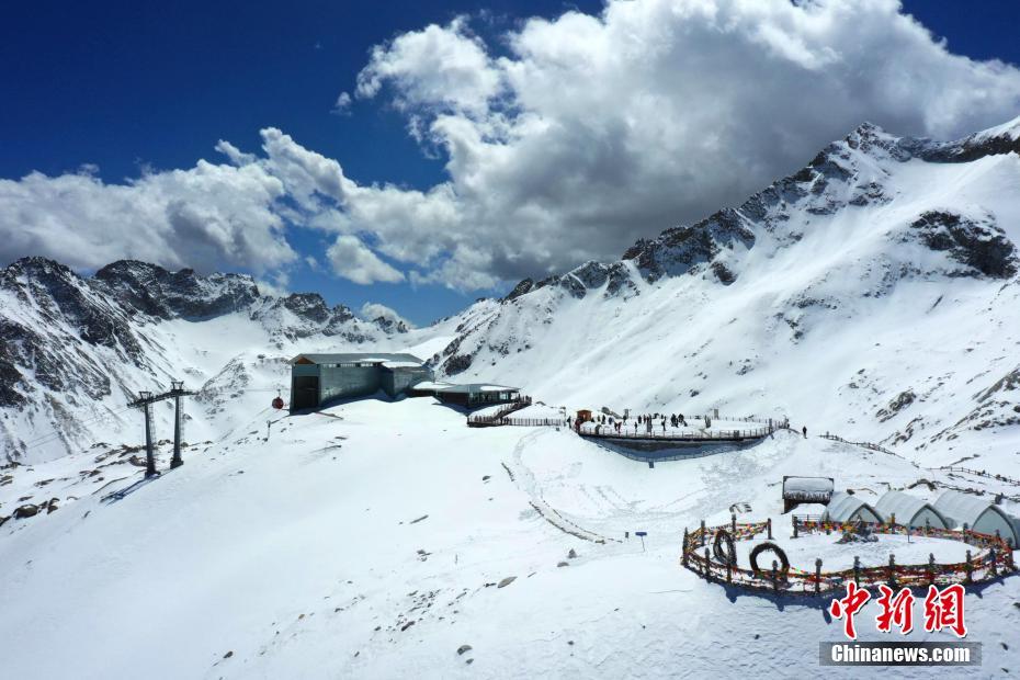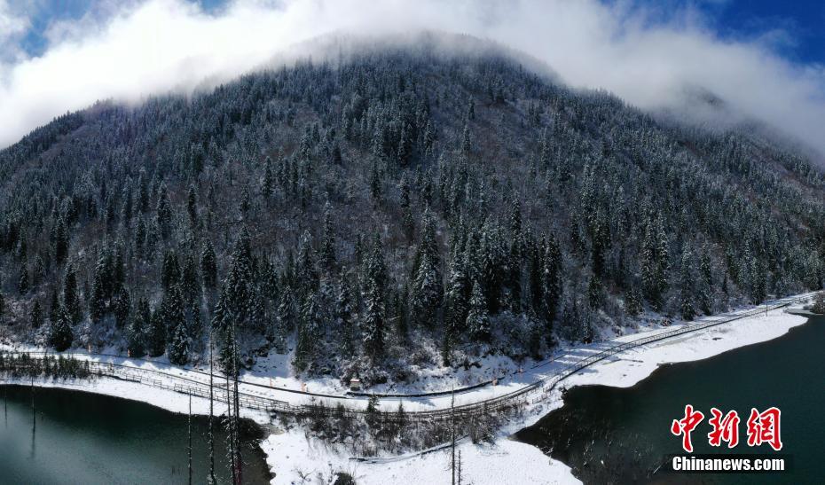 4月5日,一夜春雪后,達(dá)古冰川景區(qū)披上了潔白外衣。崇山峻嶺間,湛藍(lán)海子四周銀裝素裹,靜謐童話世界像一幅水墨畫般寧靜、美麗,為前往景區(qū)游覽的游客提供了一場視覺盛宴。