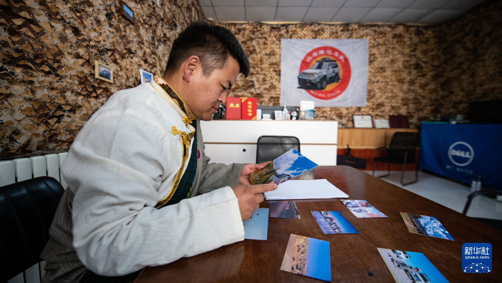 青海省海北藏族自治州剛察縣牧民多杰在整理照片(4月3日攝)。新華社 潘彬彬 攝