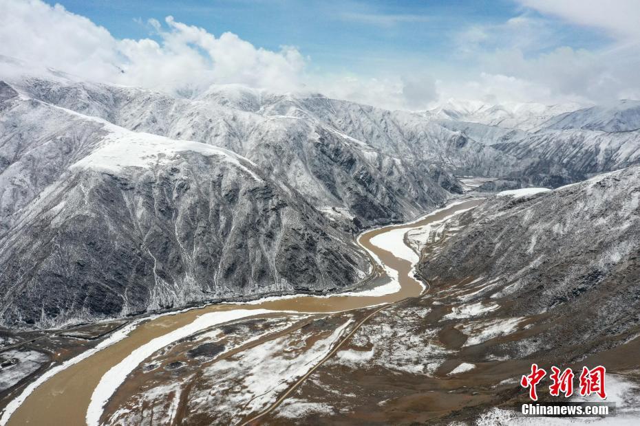 圖為航拍青海省玉樹藏族自治州稱多縣雪景,盡顯山河壯麗。馬銘言 攝