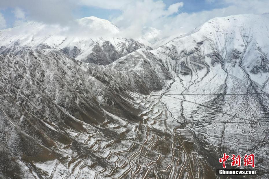 航拍青海省玉樹藏族自治州稱多縣雪景。馬銘言 攝