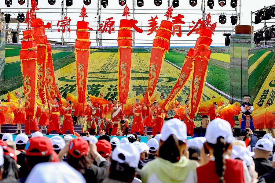 圖為“山宗水源·大美青?!贝杭疚幕糜蜗盗谢顒?dòng)暨海南·貴德第十八屆黃河文化旅游季開幕式現(xiàn)場。新華網(wǎng) 黃開森 攝