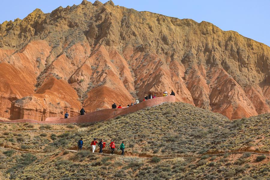 圖為游客在青海貴德國家地質(zhì)公園內(nèi)游玩。新華網(wǎng) 黃開森 攝