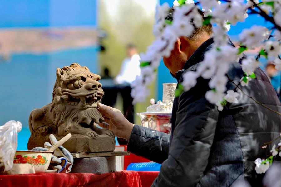 活動(dòng)現(xiàn)場,手藝人正在制作泥雕。新華網(wǎng) 黃開森 攝