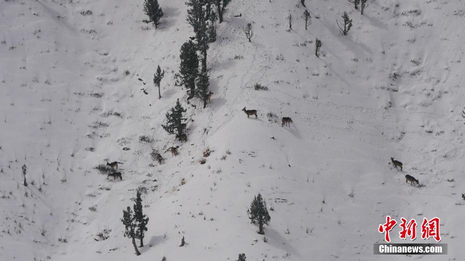 野生動(dòng)物在雪地里奔跑。都蘭融媒 供圖