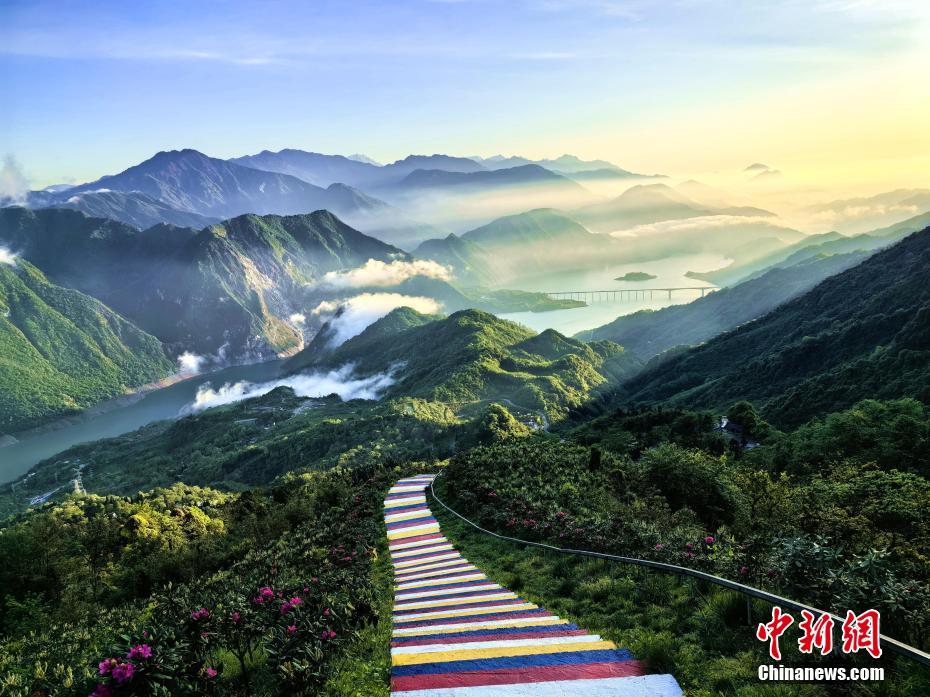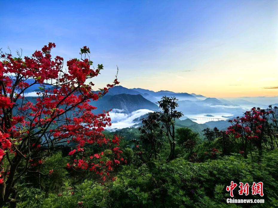 圖為紅色的杜鵑花點(diǎn)綴綠林間,美不勝收。伍排勇 攝