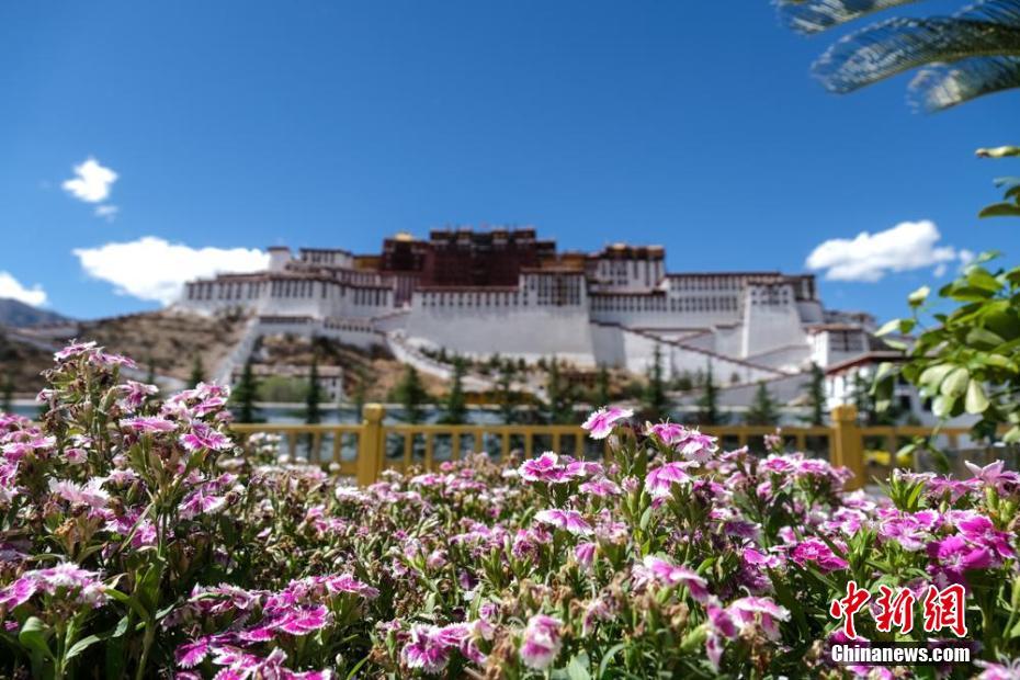 布達(dá)拉宮位于西藏自治區(qū)拉薩市紅山上,是一座古代宮堡式建筑群。布達(dá)拉宮先后被國務(wù)院公布為第一批全國重點文物保護單位,被聯(lián)合國教科文組織公布為世界遺產(chǎn)名錄。近日,高原入夏,布達(dá)拉宮周邊繁花盛開、綠柳成蔭,藍(lán)天白云下更顯秀麗。圖為5月28日,夏日鮮花與布達(dá)拉宮。