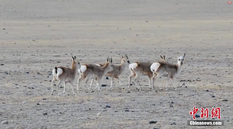 圖為成群藏羚羊在草地上覓食。宗布爾 攝
