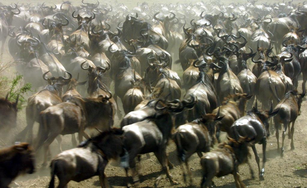 在千里之外的非洲,每年7月至9月,為了追逐水源和青草,數百萬頭角馬、斑馬和羚羊等食草動物組成一支浩浩蕩蕩的遷徙大軍,從坦桑尼亞塞倫蓋蒂國家公園向肯尼亞馬賽馬拉國家保護區(qū)遷徙,這就是東非野生動物大遷徙。當數百萬頭野生動物從面積廣闊達數萬平方公里的塞倫蓋蒂,遷徙到僅有不到2000平方公里的馬賽馬拉的時候,遷徙達到高潮。