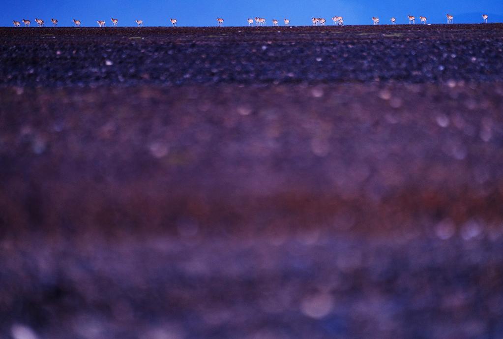 每年5月至7月,藏北羌塘國家級自然保護區(qū)內的母藏羚羊進入遷徙繁殖季。數十萬只母羊,向著羌塘保護區(qū)深處的瑪爾蓋茶卡附近和玉龍河畔的產羔地遷徙,于此生下小羊羔后再回遷。
