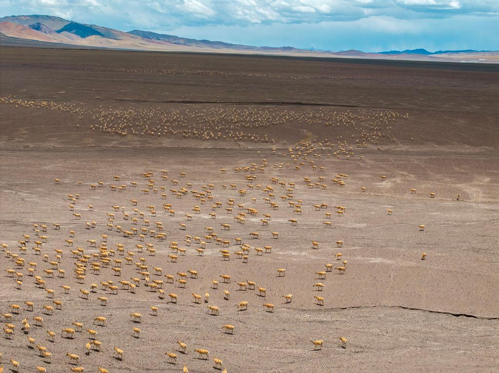 2024年6月13日,在羌塘國家級自然保護區(qū)核心區(qū),一群藏羚羊正在向“產房”遷徙。