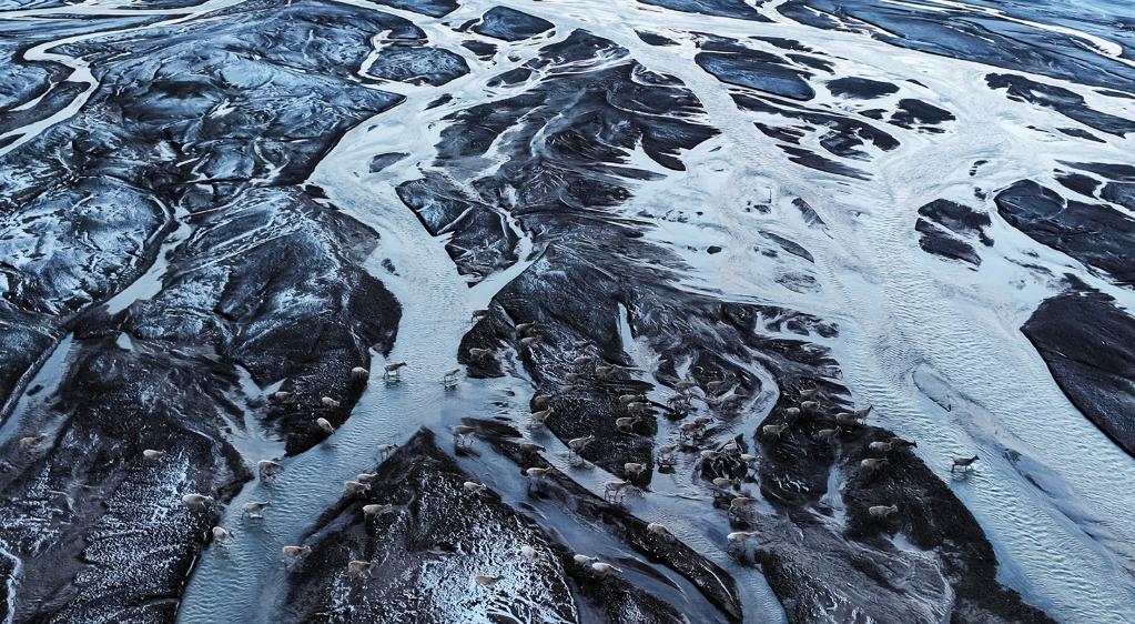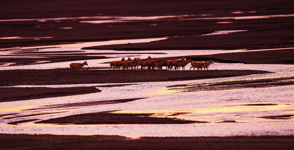 在羌塘國家級自然保護區(qū),藏羚羊越過甜水河,前往“產房”。