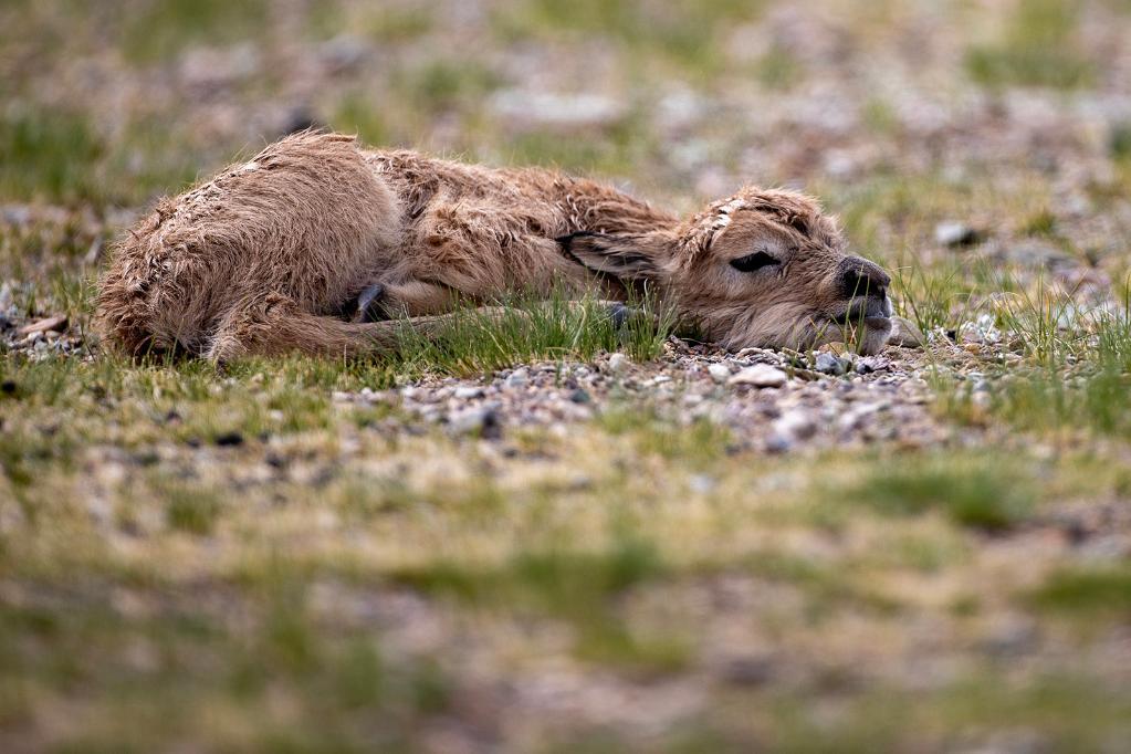 2024年6月17日,羌塘國家級自然保護區(qū)境內的西藏那曲市申扎縣買巴鄉(xiāng)魯確塘草原上一只剛出生不久的小藏羚羊。