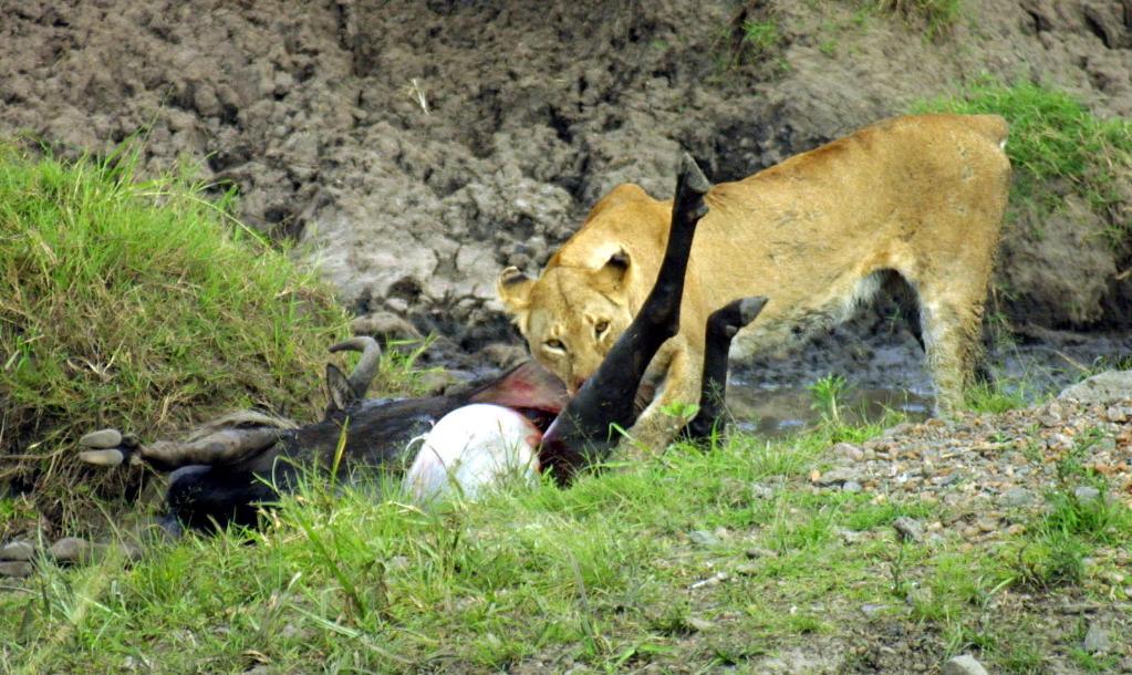 在馬賽馬拉國家保護區(qū),一頭獅子正在享用自己的獵物。