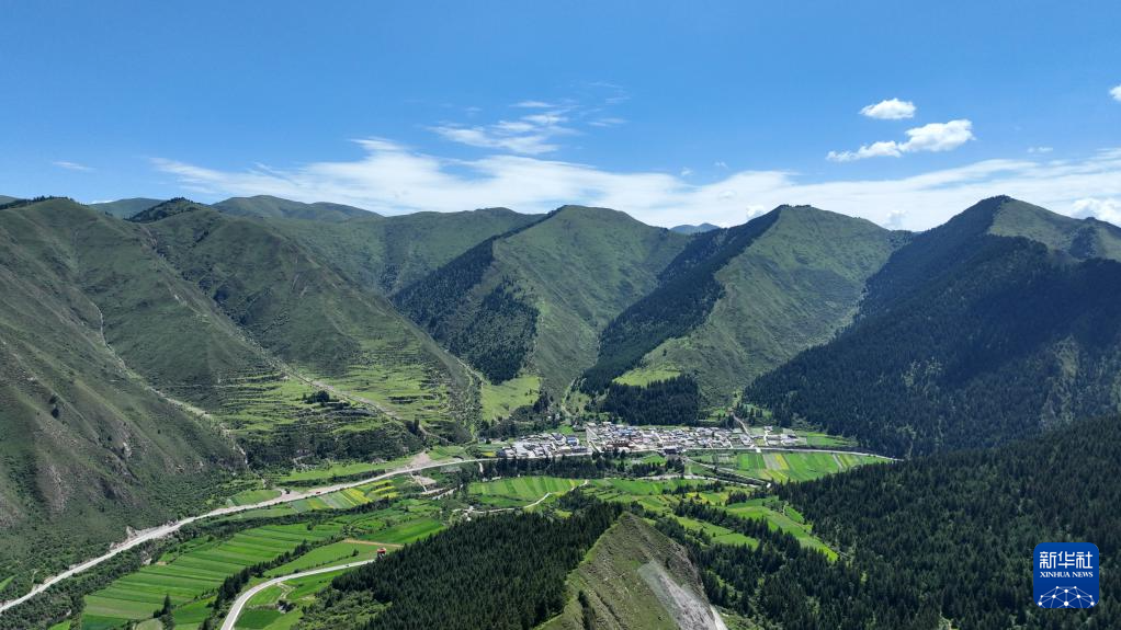 這是6月26日拍攝的大峪溝內(nèi)一處村莊(無人機照片)。新華社記者 陳斌 攝