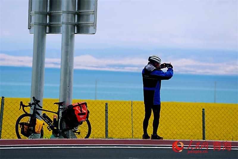 騎行途經(jīng)的游客打卡拍照。人民網(wǎng) 陳明菊 攝