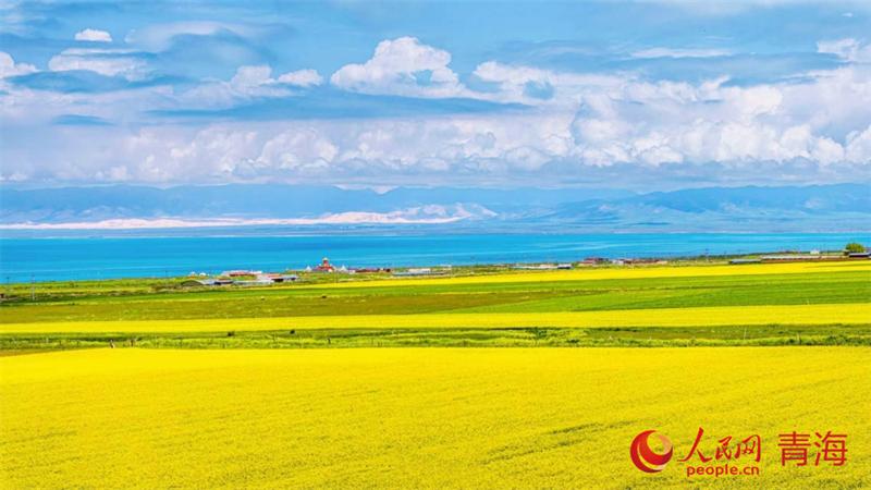 青海湖畔油菜花盛開。人民網(wǎng) 陳明菊 攝