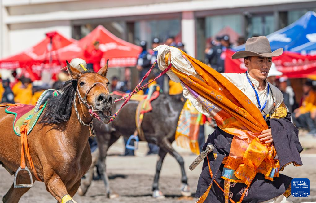 9月7日,騎手在傳統(tǒng)大跑項(xiàng)目前的傳統(tǒng)煨?;顒?dòng)中祈福。新華社記者 姜帆 攝