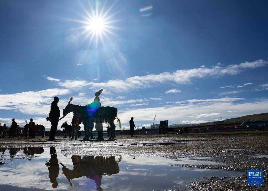 9月7日,騎手在傳統(tǒng)大跑項(xiàng)目前等待開(kāi)賽。新華社記者 丁增尼達(dá) 攝