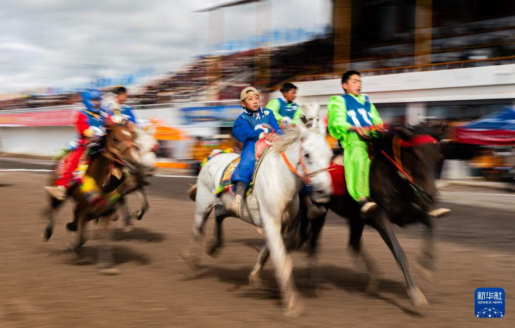 9月7日,騎手們?cè)趥鹘y(tǒng)大跑項(xiàng)目中馳騁。新華社記者 丁增尼達(dá) 攝