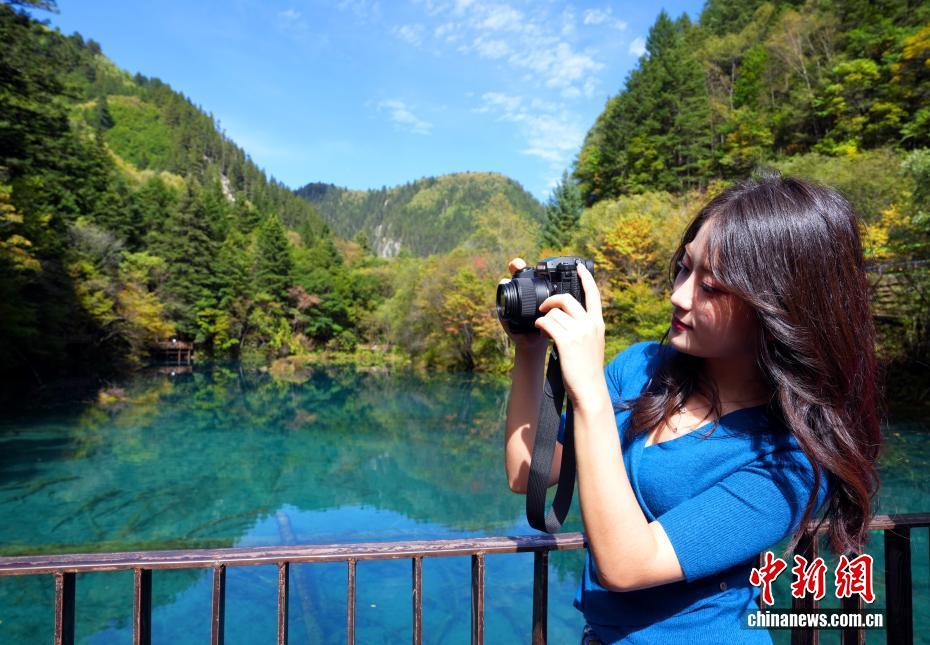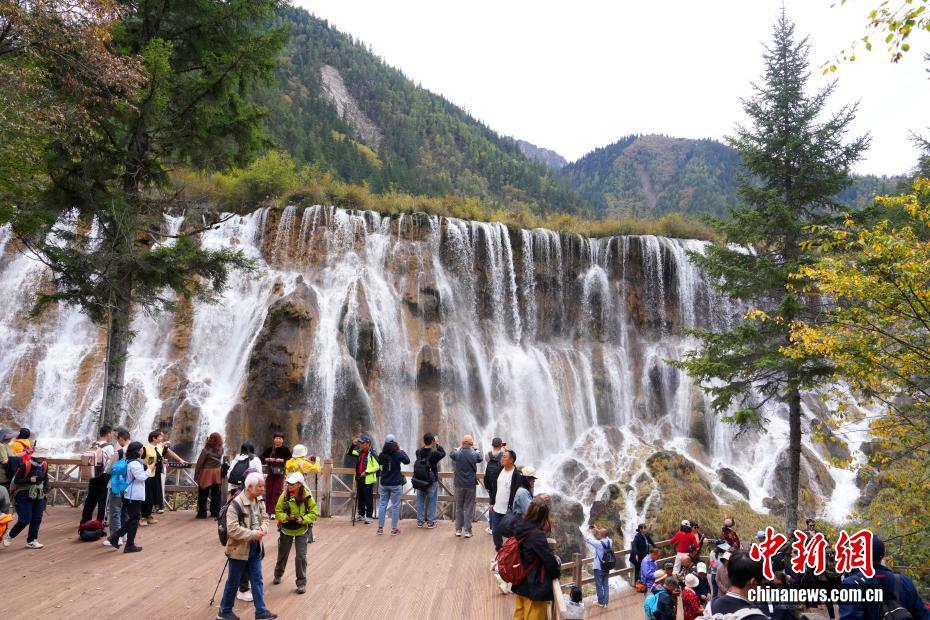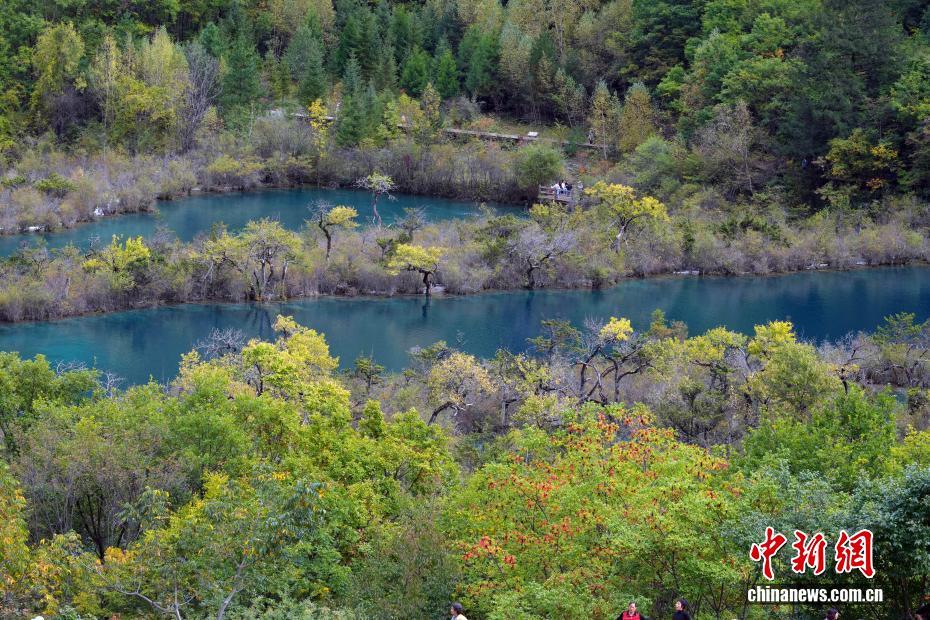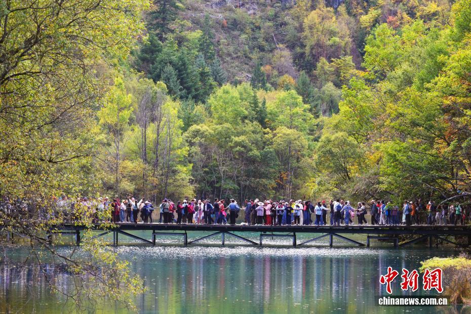 10月13日,世界自然遺產(chǎn)地九寨溝景區(qū)秋景如畫(huà),吸引眾多游客觀光游玩。