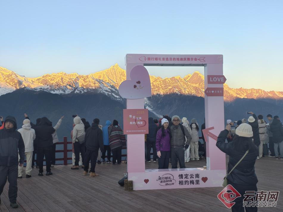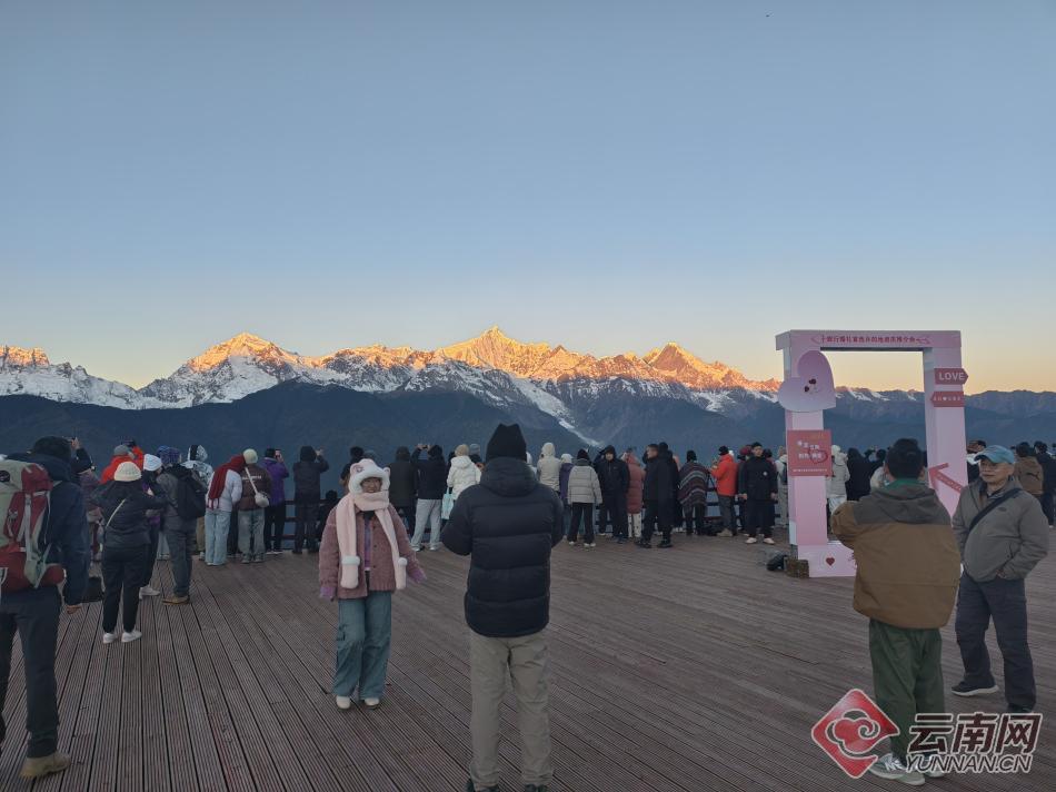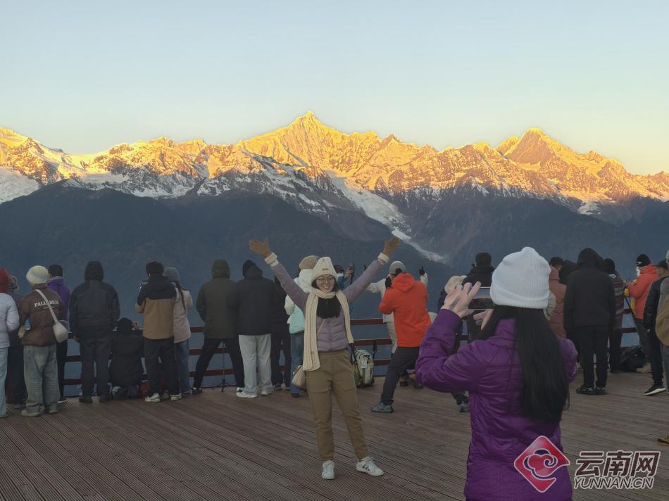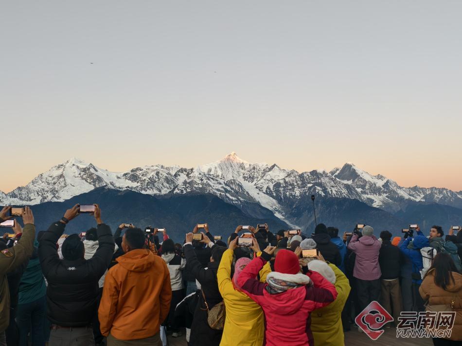 進(jìn)入冬季,云南迪慶藏族自治州梅里雪山景區(qū)觀景平臺(tái)迎來(lái)觀賞季。一大早,觀景臺(tái)上便擠滿了游客。當(dāng)清晨的第一縷陽(yáng)光照在梅里雪山最高峰的那一刻,游客們紛紛舉起手機(jī),記錄下這一時(shí)刻。據(jù)介紹,現(xiàn)在是觀看日照金山的最佳季節(jié),梅里雪山景區(qū)觀景平臺(tái)免費(fèi)開(kāi)放,迎來(lái)眾多游客。