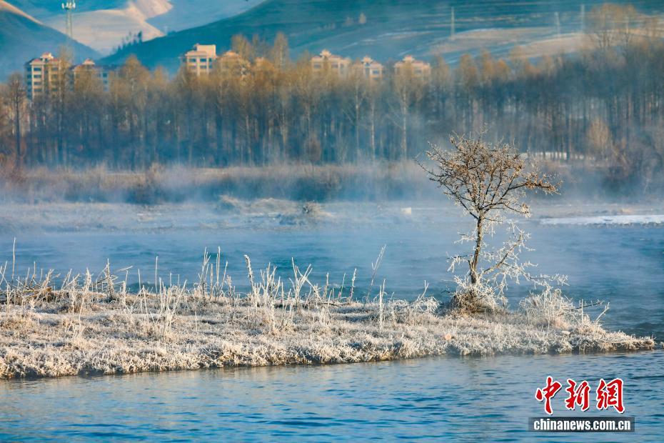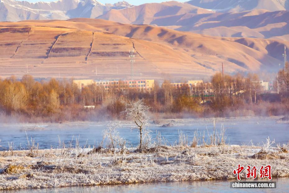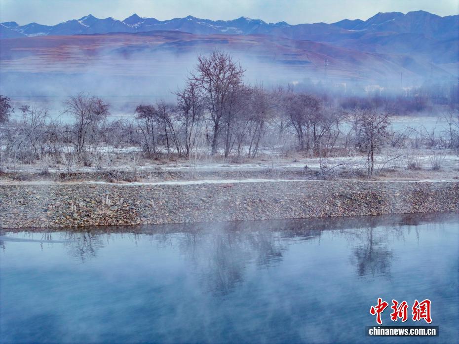 圖為大通河畔現(xiàn)霧凇景觀。中新社記者 馬銘言 攝
