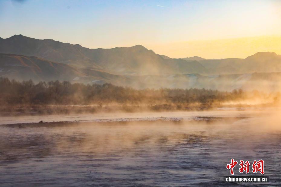 12月11日清晨,地處祁連山腹地的青海省海北藏族自治州門源回族自治縣大通河河面上白霧升騰,與河畔霧凇相互映襯,朝陽下如夢如幻,盡顯高原冬日之美。