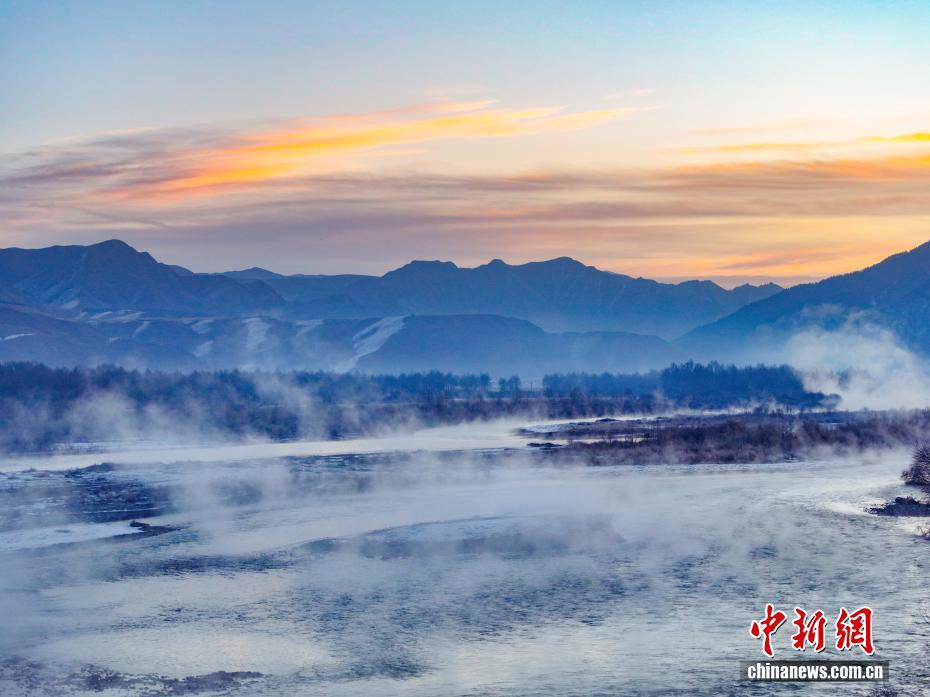 圖為河面上白霧升騰。(無人機(jī)照片)中新社記者 馬銘言 攝