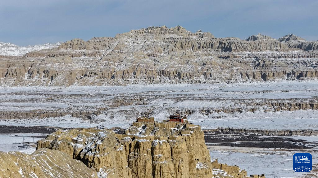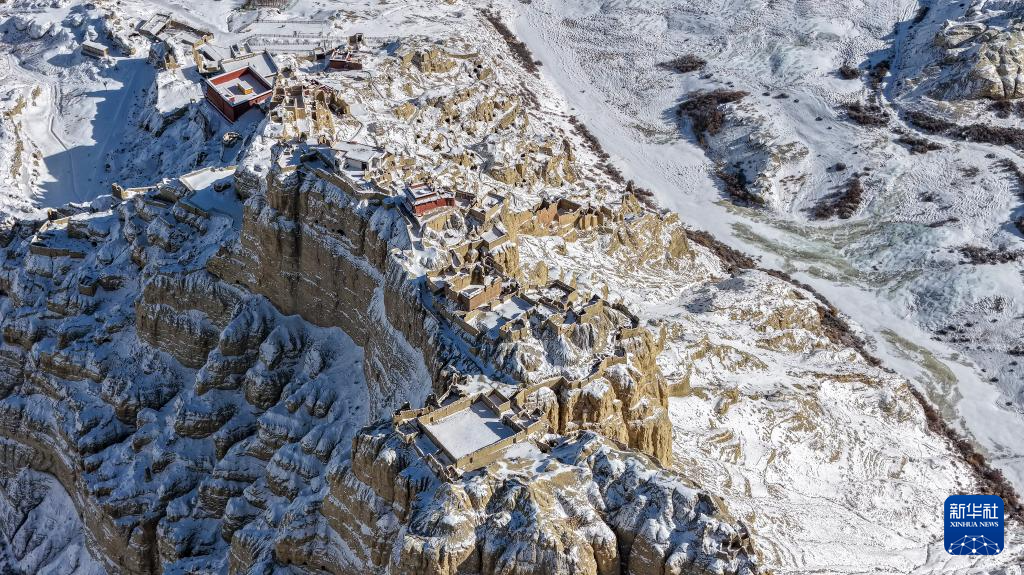這是1月24日拍攝的古格王國遺址雪景(無人機(jī)照片)。新華社發(fā)(旦真次旦攝)