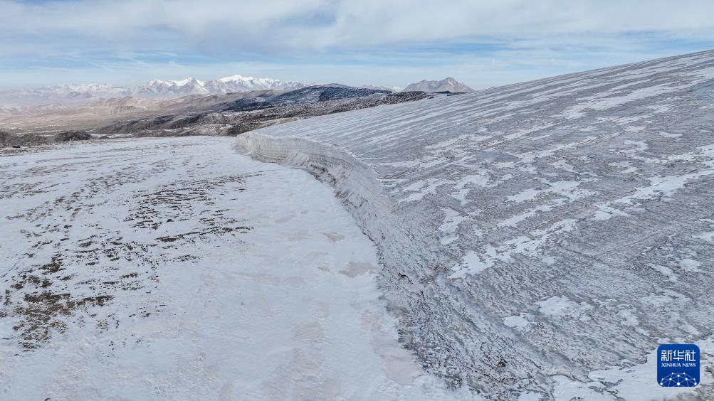 位于青海省海北藏族自治州祁連縣的八一冰川一隅(3月12日攝,無人機照片)。新華社記者 杜笑微 攝