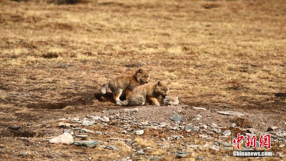 藏狐幼崽與媽媽嬉戲玩耍。蔡海勇 攝
