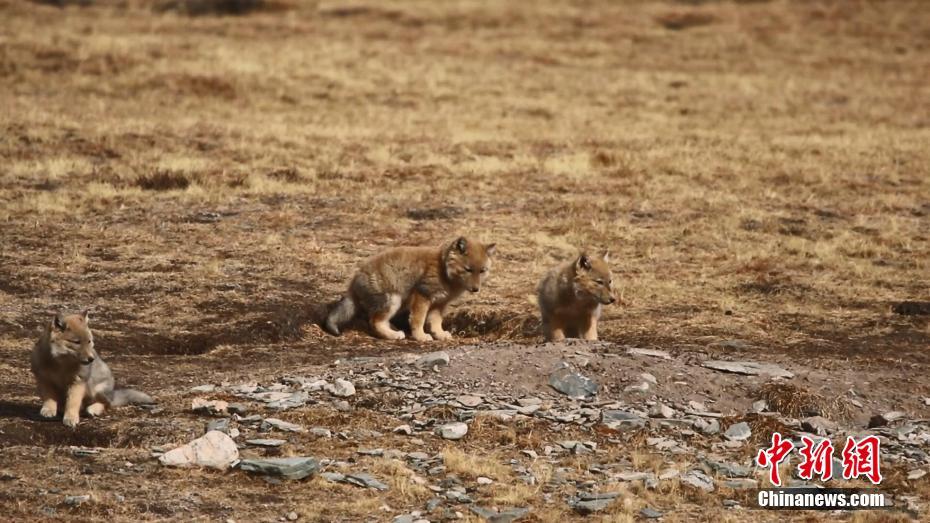 三只藏狐幼崽在草原上玩耍。蔡海勇 攝