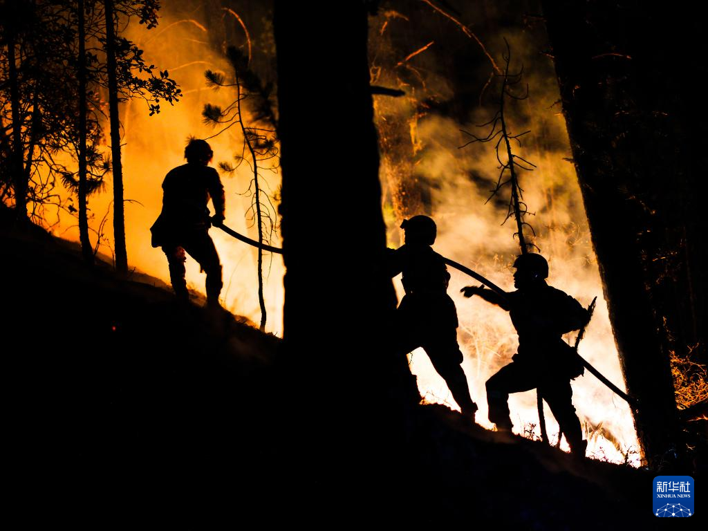 3月23日,消防員在火場撲救山火。新華社發(fā) 程雪力 攝