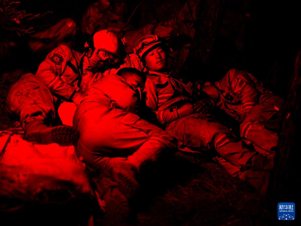 3月23日,消防員進(jìn)行短暫休息。新華社發(fā) 程雪力 攝