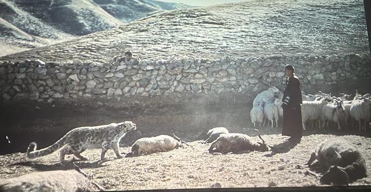 影片的結(jié)尾似乎很突然,雪豹終究沒(méi)有死在受損牧人暴怒的情緒和揮舞的錘子下,在人類(lèi)文明的關(guān)照下,被主動(dòng)解圍,回歸雪山,與小雪豹相會(huì)相伴。只有萬(wàn)導(dǎo)這種深邃包容、沉著冷靜又充滿(mǎn)睿智的作家、藝術(shù)家才能挖掘和表現(xiàn),這里蘊(yùn)含著生命的慈悲和世人的智慧。對(duì)此,我們還有哪些拷問(wèn)呢?