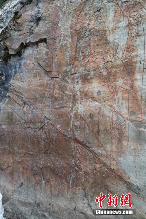 青海省玉樹藏族自治州玉樹市勒巴溝內(nèi)的摩崖石刻。馬銘言 攝