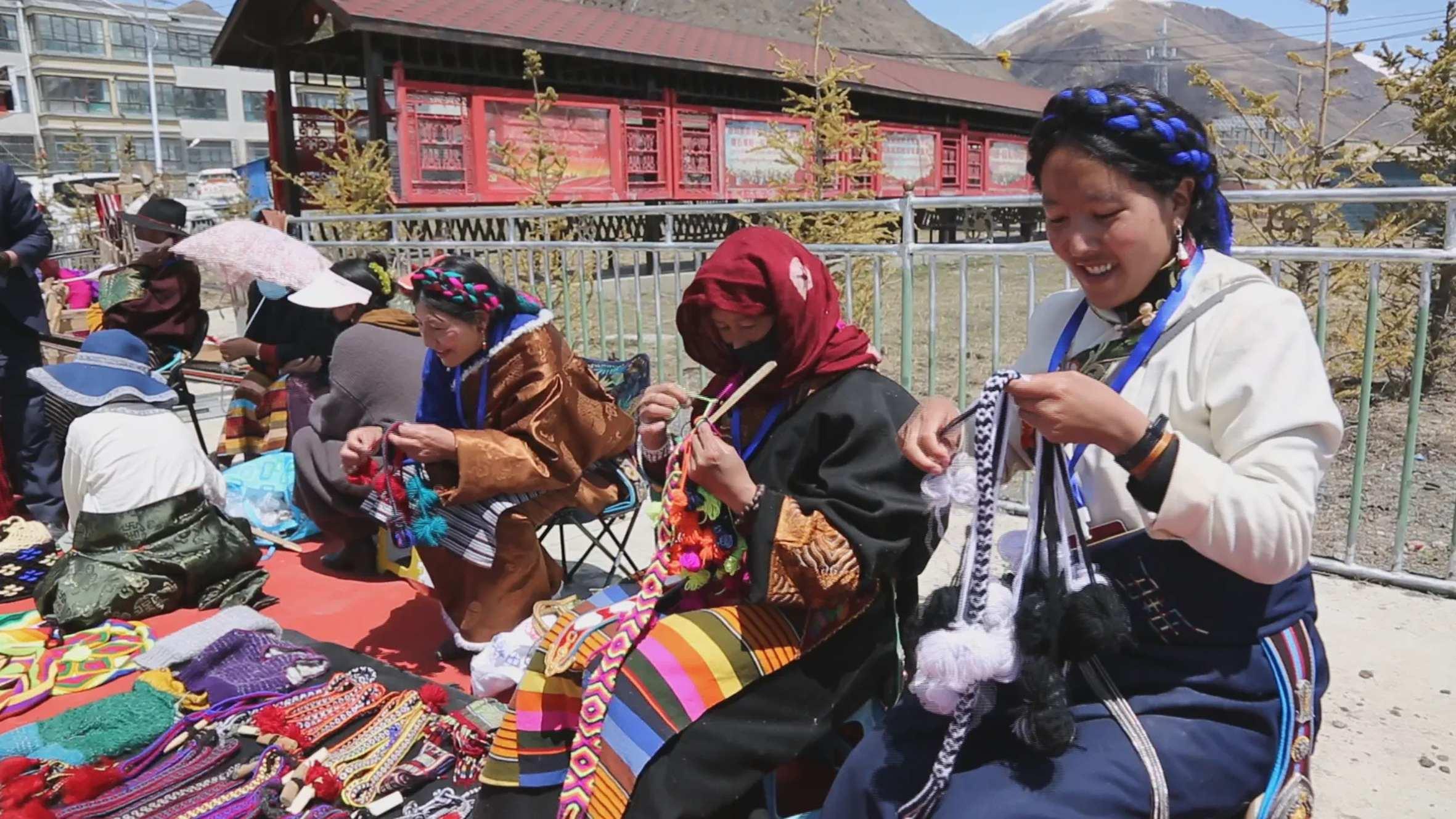 那曲市色尼區(qū)古露鎮(zhèn)的昂卓姐妹通過熟練的編織技藝蟬聯(lián)前兩屆“鄉(xiāng)村振興 那曲奮進(jìn)”編織技藝市級(jí)第一名,在當(dāng)?shù)攸h委、政府的帶領(lǐng)下,她們?cè)谫惡蠼M建手工技藝合作社,帶領(lǐng)村里23名婦女學(xué)習(xí)手工編織技藝,人均增收上萬(wàn)元。色尼區(qū)香茂鄉(xiāng)哈多村“曲美果智”編織手藝曾走上全國(guó)馬拉松大賽的舞臺(tái),在北京、杭州、青島等地亮相,搖身變成獲獎(jiǎng)選手脖子上的綬帶。2023年,她們的編織作品還走進(jìn)杭州,亮相亞運(yùn)會(huì)。